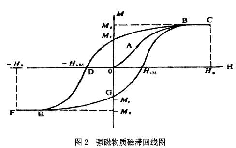 磁開關(guān)內(nèi)部裝有鐵質(zhì)的彈性簧片,在低頻磁場中,鐵質(zhì)簧片被磁化,從而使彈性簧片吸合導(dǎo)通,而油位計(jì)內(nèi)部磁翻板未達(dá)到磁開關(guān)動(dòng)作值的位置,所以監(jiān)控誤報(bào)油位異常信號(hào)。當(dāng)機(jī)組停機(jī)時(shí),勵(lì)磁電纜中電流消失,但此時(shí)磁開關(guān)誤動(dòng)作信號(hào)并未復(fù)歸,下面將通過磁滯回線的概念來解釋此現(xiàn)象。