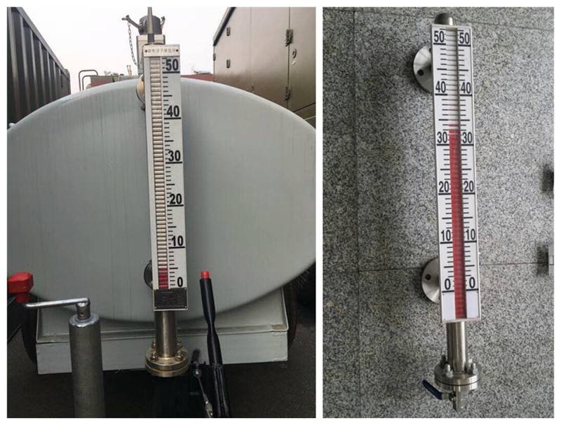 在液位計管體的另一側可按用戶需要加裝電遠傳變送器,將液位高度轉換成標準電流信號輸出,以供液位信號輸出,以供液位信號遠傳至二次儀表進行指示控制與檢測。