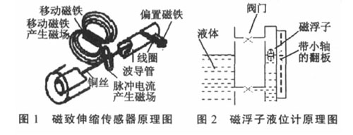 磁致伸縮線性液位傳感器,采用不導(dǎo)磁的不銹鋼管(}J}(桿)、磁致伸縮線(波導(dǎo)線)、可隨液面或界面移動的浮球(內(nèi)含磁環(huán))和電子部件等組成(見圖1)