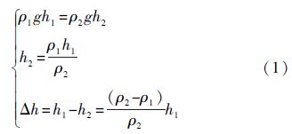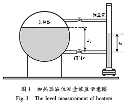假設一個加熱器的液位測量裝置如圖1所示,由于側裝磁翻板液位計中的水溫低于加熱器中的水溫,水溫下降會導致水的密度上升,水的密度上升會產生兩個相反的作用: