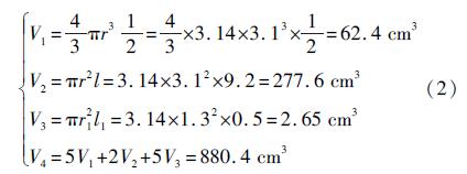 式中:V1、V3為半球的體積;V2為直筒的體積;V4為非線性部分的總體積。
