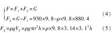 式中:F為浮球在水中的浮力;G為浮球的質量;ρ為水的密度。