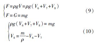 式中:h為直筒底部距離浮球浸在水中時水面的高度。由于浮球在水中的浮力等于它自身的重力,由此可得: