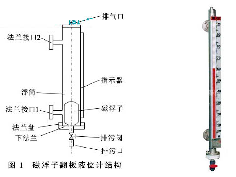 浮子式耐腐蝕磁翻板液位計是根據阿基米德定律、磁耦合原理和浮力原理設計而成的液位測量儀表m。浮子中鑲嵌磁性體,磁性體隨浮子上下移動,外部的指示部件感應到磁體的移動,從而指示出液位的變化。磁浮子翻板液位計結構見圖。