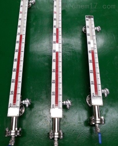 磁翻板液位計是本公司引進、吸收國外同類產品,并加以吸收、消化、提高,按原化學工業部頒布的磁性液位計標準T21584-95研制生產的產品。可用于各種塔、罐槽、球形容器和鍋爐等設備的介質液位檢測。該系列磁性液位計可以做到高密封,防泄漏和適應高壓高溫、腐蝕性條件下的液位測量,具有可靠的安全性,它彌補了玻璃板(管)液位計指示不清晰,易破碎的不足,不受高、低溫度劇變的影響,不需多組液位計的組合。全過程測量無盲區,顯示醒目、讀數直觀,且測量范圍大。特別是現場指示部分,由于不與液體介質直接接觸,所以對高溫、高壓、高粘度、有毒有害、強腐蝕性介質,更顯其優越性。因此,它比傳統的玻璃管,板式液位計具有更高的可靠性、安全性、先進性、實用性。
