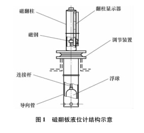 蒸餾水液位計是根據(jù)磁性原理、 阿基米德浮力定律等巧妙地結(jié)合機械傳動的特性而開發(fā)研制的一種專門用于液位測量的裝置。典型的蒸餾水液位計結(jié)構(gòu)如圖 1 所示。
