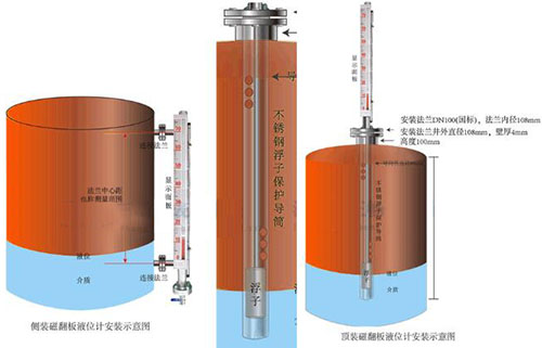 磁性液位計也被叫做瀝青液位計,其所工作的原理為借助磁藕合原理而開展的工作形式,很好的將玻璃管液位計不可以在高溫高壓狀態下工作的缺點填補。使用過程中的安裝方式包括側裝與頂裝兩種,而不管在安裝過程中使用哪一種方式,都能夠達到連接遠端傳遞設備的作用,從而讓液位計清楚的對液位進行顯示,同時能夠實現監控液位的遠端控制目的,實現連接功能后的瀝青液位計可以當成遠端傳