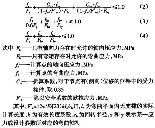 (2)UC值是美國ANSI/AISC《鋼結(jié)構(gòu)設(shè)計(jì)手冊》針對鋼結(jié)構(gòu)物體承受壓縮彎曲等多種組合載荷聯(lián)合作用時(shí)所采用的綜合機(jī)械強(qiáng)度性能的度量指標(biāo)。