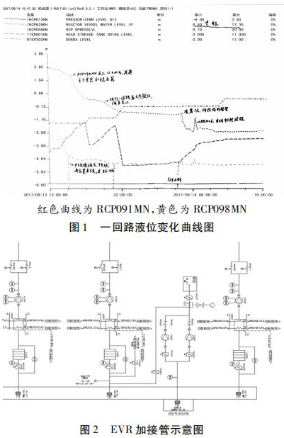 M310 機組大修一回路降液位時,RPC098MN 與 RCP091MN 液位顯示不一致。在 2017 年 9 月 13 號方家山一號機組中班的主線任務(wù)是一回路排水到 10. 5m,從接班時,早班值已將水排到了 RCP098MN 顯示為 10. 68,而 RCP091 / 090MN 顯示為 11. 5M。規(guī)程上要求 RCP098MN 與 RCP091MN相差 20 ~ 50cm 時需停下來等液位偏差小于 10cm 才允許繼續(xù)降水位。且據(jù)安工要求,如果 RCP098MN 與 RPC091MN 的顯示相差超過 1m 則認為兩個蒸汽夾套磁翻板液位計都不可用,需計*一組 I0。