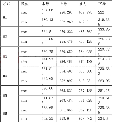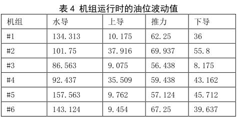 小結:在機組運行時油位有波動是正常的現象,受各臺機組的具體運行情況不同,加上還有傳感器的測量數值波動影響,6 臺機的各部軸承油位波動范圍沒有相同的規律。