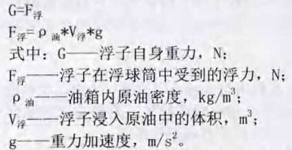 通過(guò)上式可以看出,浮球桶進(jìn)入液體體積約為1/2左右,說(shuō)明其對(duì)于密度為0.92g/c3的中到重質(zhì)油測(cè)量液位非常合適,避免了人工測(cè)量產(chǎn)生的人為誤差,更對(duì)于測(cè)量人員靠近罐口可能產(chǎn)生的危險(xiǎn)進(jìn)行了有效的規(guī)避。