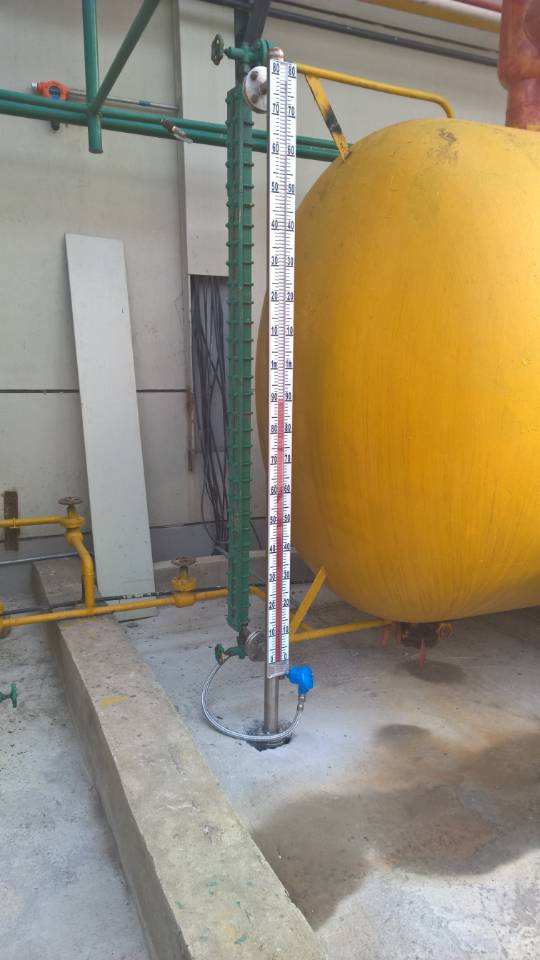 液位計根據浮力原理,浮子在測量管內隨液位的升降而上下移動,浮子內的永久磁鋼通過磁耦合作用,驅動紅、白色翻柱翻轉180’液位上升時,翻柱由白色轉為紅色,下降時,翻柱由紅色轉為白色,從而實現液位的指示。