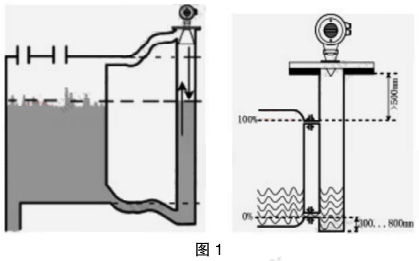 如圖1所示,導(dǎo)波雷達(dá)液位計(jì)是依據(jù)時(shí)域反射原理(TDR)為基礎(chǔ)的雷達(dá)液位計(jì),雷達(dá)液位計(jì)的電磁脈沖以光速沿鋼纜或探棒傳播,當(dāng)遇到被測(cè)介質(zhì)表面時(shí),雷達(dá)液位計(jì)的部分脈沖被反射形成回波并沿相同路徑返回到脈沖發(fā)射裝置,發(fā)射裝置與被測(cè)介質(zhì)表面的距離同脈沖在其間的傳播時(shí)間成正比,經(jīng)計(jì)算得出液位高度。某電廠(chǎng)經(jīng)過(guò)技術(shù)改造采用波導(dǎo)雷達(dá)后,液氨液位波箱現(xiàn)象消失,儲(chǔ)罐運(yùn)行良好。