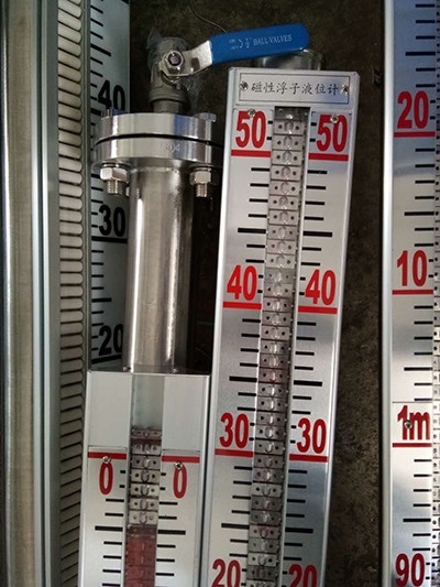 根據浮力原理,浮子在測量管內隨液位的升降而上、下移動,浮子內的永久磁鋼通過耦合作用,驅動紅、白色翻柱翻轉180°,液位上升時翻柱由白色轉為紅色,下降時由紅色轉為白色,從而實現液位指示。