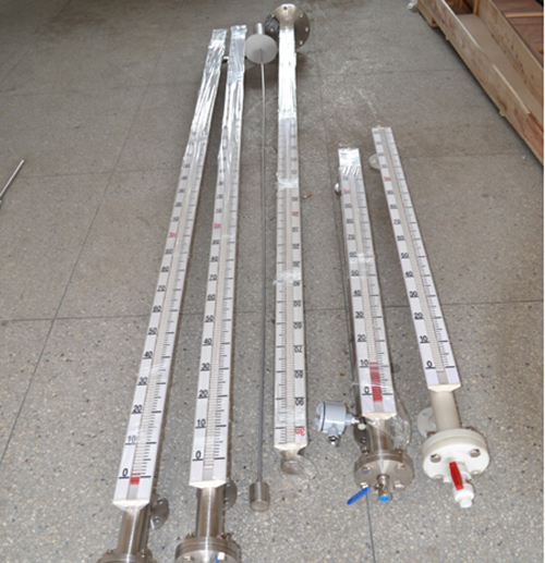 根據浮力原理,浮子在測量管內隨液位的升降而上、下移動,浮子內的永久磁鋼通過耦合作用,驅動紅、白色翻柱翻轉180°,液位上升時翻柱由白色轉為紅色,下降時由紅色轉為白色,從而實現液位指示。
