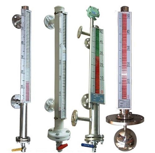 液位計根據浮力原理,浮子在測量管內隨液位的升降而上下移動,浮子內的永久磁鋼通過磁耦合作用,驅動紅、白色翻柱翻轉180’液位上升時,翻柱由白色轉為紅色,下降時,翻柱由紅色轉為白色,從而實現液位的指示。