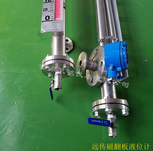 在磁翻板液位計管體的另一側可按用戶需要加裝電遠傳變送器,將液位高度轉換成標準電流信號輸出,以供液位信號輸出,以供液位信號遠傳至二次儀表進行指示控制與檢測。